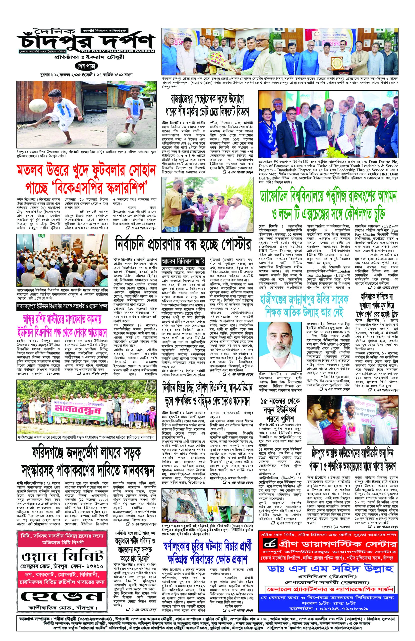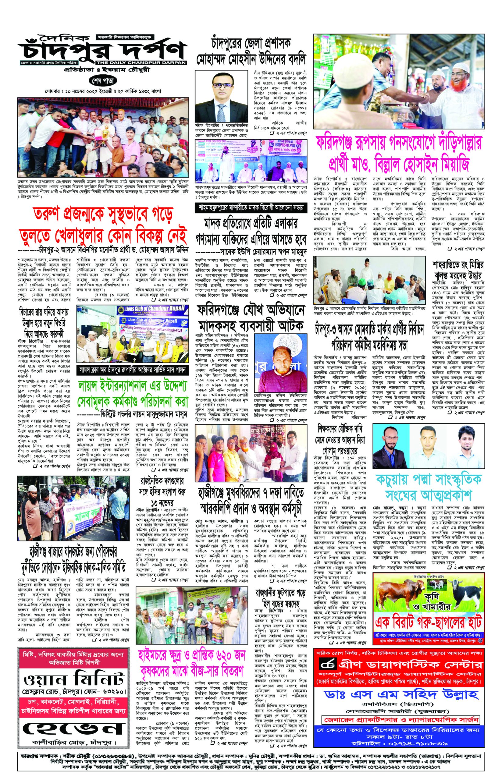নাজিরপাড়া, কলেজ মসজিদ সংলগ্ন, চাঁদপুর। বিজ্ঞাপন : 01712281221 E-mail: chandpurdarpan@gmail.com
